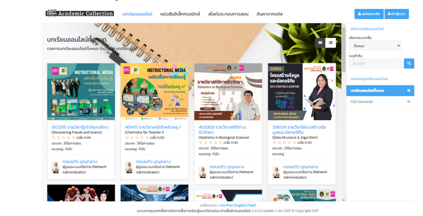 มหาวิทยาลัยราชภัฏนครราชสีมา โดยสำนักวิทยบริการและเทคโนโลยีสารสนเทศ มีบทเรียนออนไลน์ ระบบสารสนเทศเพื่อการจัดการสื่อการเรียนรู้แบบมีส่วนร่วม ผ่านสื่อสังคมออนไลน์ (ARIT Academic collection) เพื่อสนับสนุนการจัดการเรียนการสอนรูปแบบออนไลน์