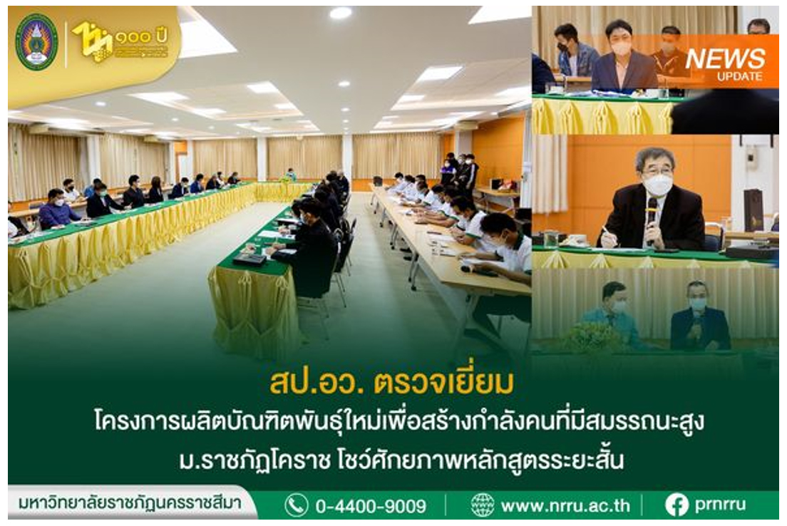 วันนี้ (9 กันยายน 2565) มหาวิทยาลัยราชภัฏนครราชสีมา นำโดย ผู้ช่วยศาสตราจารย์ ดร.อดิศร เนาวนนท์ อธิการบดี พร้อมด้วยคณะผู้บริหารมหาวิทยาลัย , ผู้รับผิดชอบหลักสูตร ระนะสั้น (Non-Degree) ร่วมให้การต้อนรับ รองศาสตราจารย์ ดร.บัณฑิต ทิพากร ประธานอนุกรรมการเฉพาะกิจเพื่อบริหารโครงการผลิตบัณฑิตพันธุ์ใหม่ และคณะตรวจเยี่ยมหลักสูตร จาก สำนักปลัดกระทรวงอุดมศึกษา วิทยาศาสตร์ วิจัยและนวัตกรรม ( สป.อว. ) ณ ห้องประชุมศูนย์วิทยาศาสตร์ มหาวิทยาลัยราชภัฏนครราชสีมา โดยในกิจกรรมการลงพื้นที่ตรวจเยี่ยมครั้งนี้ มหาวิทยาลัยได้นำเสนอผลการดำเนินงานหลักสูตรระยะสั้น 3 หลักสูตร ประกอบด้วย หลักสูตรการพัฒนาสื่อดิจิทัลสร้างสรรค์และพาณิชย์อิเล็กทรอนิกส์ , หลักสูตรการนวดเพื่อฟื้นฟูสุขภาพ และ หลักสูตรการผสมเทียมและเทคโนโลยีชีวภาพเพื่อการผลิตโคเนื้อคุณภาพสูง