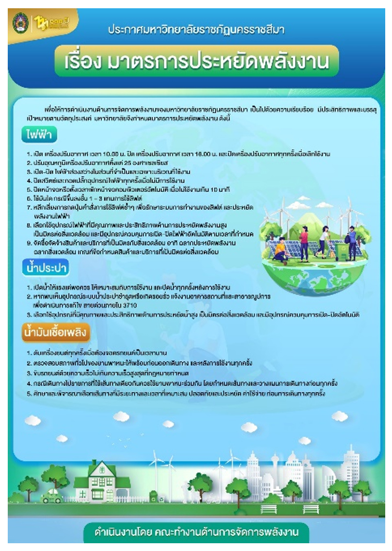 ประกาศมหาวิทยาลัยราชภัฏนครราชสีมา เรื่อง มาตรการประหยัดพลังงาน