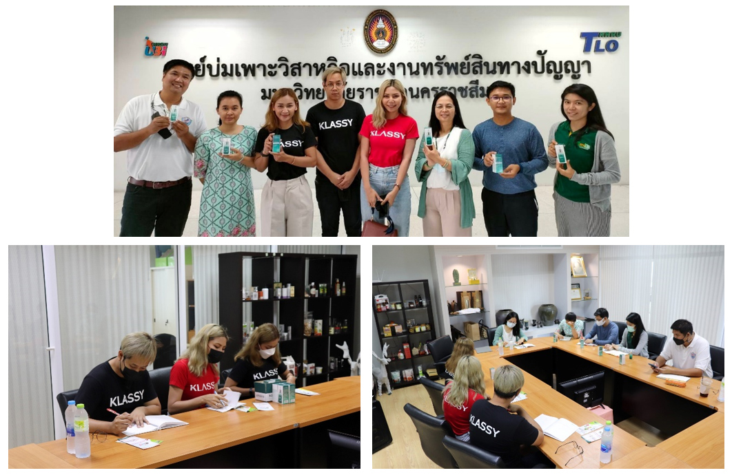 ศูนย์บ่มเพาะวิสาหกิจ มหาวิทยาลัยราชภัฏนครราชสีมา ร่วมกับ หอการค้าจังหวัดนครราชสีมา ให้คำปรึกษาด้านการพัฒนาช่องทางการตลาด #ผลิตภัณฑ์เครื่องสำอาง_แบรนด์KLASSY ผลิตภัณฑ์จากสารสกัดจากพืชท้องถิ่น เจ้าของผลิตภัณฑ์ คุณเสาวนีย์ ขจัดภัย ศิษย์เก่ามหาวิทยาลัยราชภัฏนครราชสีมา คณะให้คำปรึกษาโดยมี ดร.พวงพรภัสสร์ วิริยะ ผู้จัดการศูนย์บ่มเพาะ มหาวิทยาลัยราชภัฏนครราชสีมา ทีมงาน และ ดร.ธีรพงศ์ คณาศักดิ์ รองประธานหอการค้าจังหวัดนครราชสีมาฝ่ายกิจการต่างประเทศและคณะกรรมการบริหารศูนย์บ่มเพาะวิสาหกิจ ร่วมให้คำปรึกาาด้านการพัฒนาช่องทางการตลาดการจำหน่ายทั้งในและต่างประเทศสำหรับธุรกิจและผลิตภัณฑ์