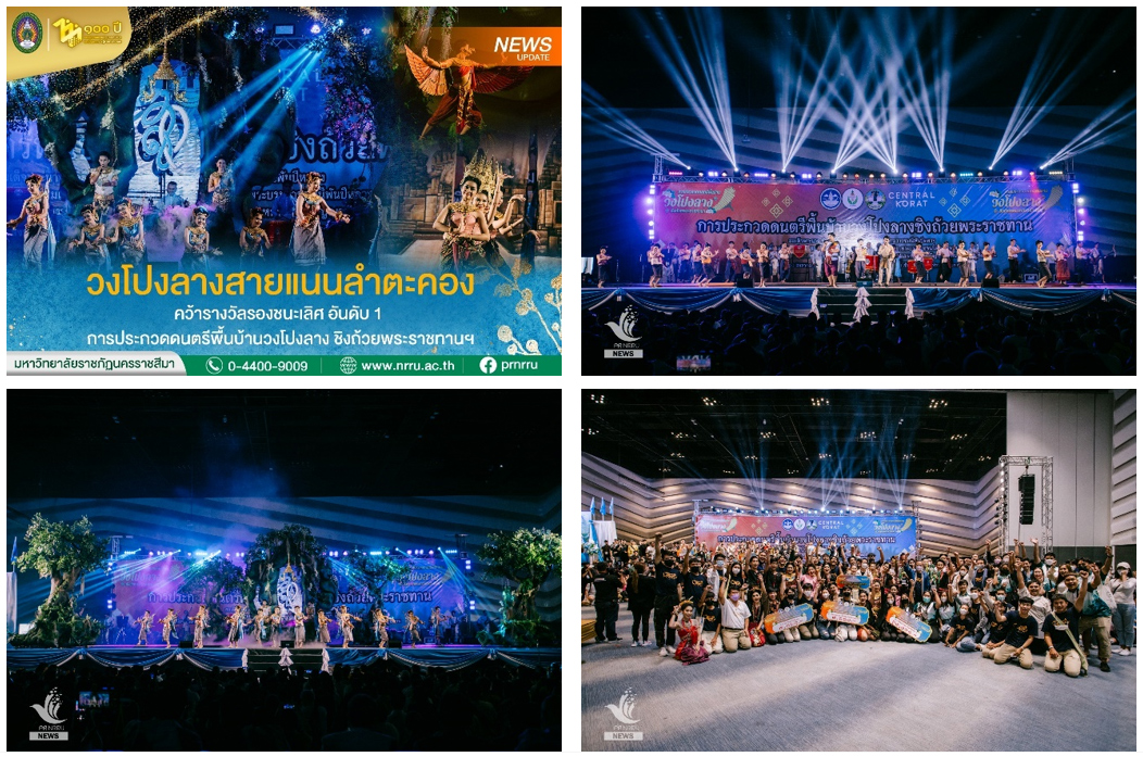 วงโปงลางสายแนนลำตะคอง สำนักศิลปะและวัฒนธรรม มหาวิทยาลัยราชภัฏนครราชสีมา คว้ารางวัล รองชนะเลิศ อันดับ 1 การประกวดดนตรีพื้นบ้านวงโปงลางชิงถ้วยพระราชทาน สมเด็จพระนางเจ้าสิริกิติ์ พระบรมราชินีนาถ พระบรมราชชนนีพันปีหลวง เนื่องในโอกาสมหามงคลเฉลิมพระชนมพรรษา 90 พรรษา 12 สิงหาคม 2565 ในงานมหกรรมภูมิปัญญานันทนาการท้องถิ่นอีสาน ได้รับถ้วยรางวัลจากกรมพละศึกษา วงโปงลางสายแนนลำตะคอง สำนักศิลปะและวัฒนธรรม มีความมุ่งมั่น ทุมเท ฝึกซ้อมและสามารถจัดการแสดงได้อย่างสวยงามสร้างความประทับใจให้กับผู้ชม เป็นแบบอย่างที่ดีให้กับนักศึกษาในการ ยกระดับ Soft Power พัฒนาขีดความสามารถของตนเองต่อไป